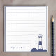 Um bloco de notas náutico com ilustração de um farol e texto personalizável em tons azuis marinhos: um excelente presente para um marinheiro ou amante de oceanos e costas marítimas! Você pode usá-los em um barco ou no escritório! Se você preferir espaço no vazio, poderá excluir as linhas modificando o texto 2.