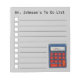 O design do Notepad apresenta uma ilustração original de uma calculadora de classe matemática azul e vermelha. Apenas personalize para um presente único para seu professor favorito. Não vê o que está procurando? Precisa de ajuda para a personalização? Entre em contato com Rebecca para ter algo projetado só para você.