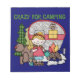 As meninas que amam acampar amarão este design bonito do ar livre que caracteriza uma menina de cabelo loura em umas férias de acampamento, em um urso, na coruja, no campista, nas árvores, e no fogo do acampamento!