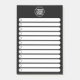 This minimalist notepad features white to-do list checkboxes, with a black background. Above is a space for you to insert your business logo. You can edit the shape of the checklist as needed. Great gift for home business owners. ••• For more black and white business stationery, visit my store www.zazzle.com/the_business_babe ••• For custom orders, message me on Zazzle