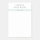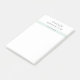 Notas adesivas brancas e poeirentas, brancas e poeirentas, com seu nome em uma fonte sans serif moderna, com texto personalizado por baixo de uma banda verde-poeirenta leve.