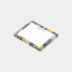 Jot down your notes, reminders, messages, and to do lists on this gorgeous personalized sticky notepad with a frame of a lush modern floral pattern with pink and yellow flowers, green and blue greenery, and a dark blue background. Add your name in a thin script.