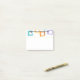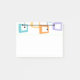 Este bloco de notas Poste tem um design de retângulos que são esticados em uma extremidade em cores ranhuras, laranja, verde, verde, roxo, azul, rosa e amarelo com linhas atômicas que os cruzam.