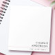 Bloco de notas moderno com o seu nome e cargo no canto inferior direito separados por uma linha rosa claro. Você pode alterar fontes e cores, mover e redimensionar elementos com a ferramenta de design.
