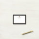 Bloco de notas monograma com um design minimalista numa paleta a preto e branco com acentos de ouro. Nome e título personalizados, função ou texto personalizado apresentado em um plano de fundo branco simples, enquadrado por uma borda negra. Personalize usando os campos fornecidos ou use o botão 'mensagem' para entrar em contato com o designer para obter ajuda.
