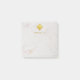 O fundo é de mármore branco. Na parte superior, há um monograma inicial caligráfico elegante dourado em um quadrado dourado (metal falso); abaixo dele, o nome é escrito em pequenas letras maiúsculas douradas.