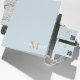 Um bloco de notas moderno, elegante e moderno, apresentado aqui em azul empoeirado com monograma bronzeado e tipografia de nome branco. As cores podem ser personalizadas à sua escolha