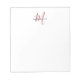 Notepad de Monograma de Script Vermelho Branco Moderno Elegante. Um monograma elegante de script vermelho combinado com uma fonte limpa de san-serif preta faz uma aparência contemporânea.