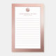 Um bloco de anotações elegante com um design minimalista monograma numa paleta de cor rosa rosa-dourada. Nome e título personalizados, função ou texto personalizado apresentado em um fundo branco simples, enquadrado por uma borda rosa dourada shimmery. Personalize usando os campos fornecidos ou use o botão 'mensagem' para entrar em contato com o designer para obter ajuda.