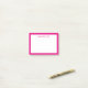 Estas notas de na moda são ótimas para o escritório. O design minimalista tem uma borda rosa quente com uma área branca simples para escrever as suas mensagens importantes. O nome está em uma fonte moderna e pode ser personalizado nas opções de personalização. As cores podem ser modificadas na ferramenta design.