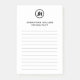 Um bloco de anotações profissional com um design monograma minimalista em uma paleta de cores preto e branco. Nome e título personalizados, função ou texto personalizado apresentado em um plano de fundo branco simples. Personalize usando os campos fornecidos ou use o botão 'mensagem' para entrar em contato com o designer para obter ajuda.