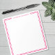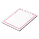 Traga um toque limpo e moderno para suas anotações diárias com este bloco de notas. Cada folha apresenta um fundo branco com uma borda dupla clássica em rosa vibrante e espaço na parte inferior para exibir seu nome completo em uma fonte serifada atemporal.