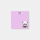 Monograma Cute Sitting Panda Personalizada Purple Posta-it Notas mostra um lindo panda sentado no chão sobre fundo roxo. Personalize com seu monograma e nome editando o texto nas caixas de texto fornecidas. Elaborado por ©Evco Studio www.zazzle.com/store/evcostudio
