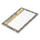Monthly Planner Notepad with a colorful spring flowers pattern on dark background. Week starts on Sunday.