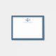 These navy blue and white nautical personalized post it notes are elegant and stylish, featuring an anchor tangled in rope, with name below, and a navy blue border around the edge.