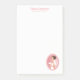 Notas personalizadas pegajosas com seu nome e título ou outro texto com uma ilustração de uma noiva sorridente segurando um buquê de flores em seu vestido branco de rico e vestindo um véu. Defina dentro um quadro oval cor-de-rosa com uma borda dimensionada.