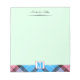 Bloco de notas Elegante, na moda e personalizável, cor azul-rosa, do Monograma Personalizado do Tartan, no topo, "monograma personalizado" e tartan xadrez amarelo-rosa no fundo do Celadon. Personalize este belo bloco de notas como um presente maravilhoso adicionando seu nome ou texto / mudando a fonte, cor, tamanho e posição.