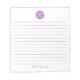 Bloco de notas Nome do Monograma Vinculado de Lavanda Simplesmente Elegante Estes blocos de notas personalizáveis são simples para uso diário ou para envio de uma nota formal a alguém do escritório ou da mesa de sua casa. Você também pode escolher uma variedade de cores do nosso compro para as necessidades do seu escritório doméstico. Personalize esses blocos de notas com seu nome ou dê como presente e personalize com seus nomes de amigos ou famílias para que possam usá-los em sua casa ou escritório.