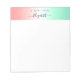 Mantenha-se organizado em estilo com o nosso Bloco de Notas com o Nome de Script Preto Gradiente Verde Vermelho Na moda! Apresentando uma faixa de gradiente vermelha, verde e branca festiva com um espaço escrevendo branco limpo, este bloco de notas é perfeito para anotar notas, listas de tarefas e lembretes. Personalize-o com o seu nome em uma elegante escrita preta e uma citação significativa para um toque único. Um presente pensativo e prático para amigos, família, colegas de trabalho ou professores!