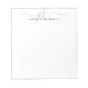 Bloco de notas moderno personalizado com simples monograma de escrita manual ou iniciais e nome em ouro e preto. ALTERAÇÕES: O estilo, cor, tamanho e posicionamento da fonte de texto podem ser alterados clicando em PERSONALIZAR AINDA MAIS na seção PERSONALIZAR para uma aparência personalizada. ASSISTÊNCIA: para obter ajuda com a modificação/personalização do design, alteração de cor, transferência do design para outro produto ou, se você quiser coordenar itens, entre em contato com o designer ANTES DE ENCOMENDAR através da guia MENSAGEM de bate-papo Zazzle ou por e-mail em makeitaboutyoustore@gmail.com.