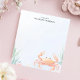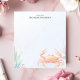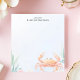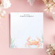 Traga um toque de charme à beira-mar para suas anotações com este lindo bloco de anotações personalizado. Um caranguejo giro, de abas cor-de-rosa, que se esfrega pelo fundo, acompanhado por sotaques sutis de algas. A design limpa e minimalista mantém o foco no charmoso crustáceo. Adicione seu texto personalizado para criar um bloco de notas exclusivo e divertido. Perfeito para amantes de praia, listas de tarefas ou lembretes rápidos.