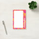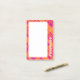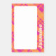 Notas pegajosas com um padrão de xadrez em laranja e magenta brilhantes, e seu nome personalizado.