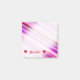 Este design de anotações apresenta um padrão de linhas ou listras coloridas de várias cores, como rosa e roxo. Ele também apresenta um nome personalizado próximo à parte inferior esquerda em texto vermelho, entre duas formas cardíacas. O padrão de fundo é mais visível nos cantos superior esquerdo e inferior direito, com uma área mais clara e colorida perto do centro. [~Z0000146]