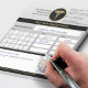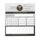 Design profissional para fins médicos: símbolo ouro Caduceus, botão preto de ouro, sobre fundo precioso. Este bloco de notas de compromisso oferece bastante espaço para todos os detalhes importantes: nome, endereço, número de telefone, correio eletrônico e website. Há também um campo grande para o nome do paciente e 4 linhas para consultas. Há espaço suficiente na parte inferior para notas adicionais importantes e/ou para seu carimbo de serviço. Perfeito para qualquer negócio relacionado a cuidados de saúde, como consultório médico, clínica ou hospital. Para funcionarios hospitalares, médicos, enfermeiras; elegantes, nobres e elegantes.