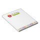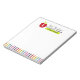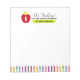 Prepare-se para voltar à escola com este bloco de notas. O design apresenta gráficos coloridos e sólidos de uma maçã vermelha e um arco-íris de lápis. Personalize este bloco de notas com o seu próprio nível e nome de classe de professores. A mensagem positiva de "Nós nutrimos todos os pequenos aprendizes" é perfeita para qualquer sala de aula elementar.