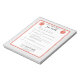 Este bloco de notas divertido apresenta um fundo de pontos vermelhos com sotaques de maçã xadrez vermelha e uma modelo para simplesmente escrevendo notas/desculpas escolares para enviar para a escola. Personalize nomes e informações de contato. Veja a seção de Suprimentos Escolares para mais designs e modelos para várias crianças.