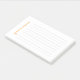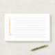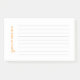 Nota Postada personalizada em linha. Linhas de cinza claras com texto de script laranja vertical na margem esquerda.