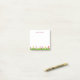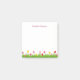 Tulipa ilustração das tulipas à sombra de rosa e amarelo na grama verde no fundo das notas. Personalize com seu nome ou mensagem em fonte roxa rosa profunda.