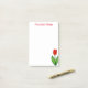 Notas grandes personalizadas do Post-it® com flor de tulipa vermelha. Faça suas próprias notas pegajosas. Texto personalizável. Design de corte com nome ou mensagem personalizados. Material escolar, doméstico e de escritório com nome. Design de diversão para professores e crianças. Excelente também para compro florista/floricultura.
