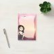 Um posto elegante que ele faz nota de apresentar uma moça de desenho em uma paisagem de fantasia no pôr do sol.