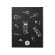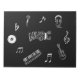 Um bloco de anotações com tema musical. Música branca tem o tema gráfico, em um cobrir preto, centrado na palavra música.