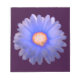 Este notável bloco apresenta uma fotografia de uma flor de marigold que foi manipulada para criar uma flor bonita com um centro vermelho brilhante brilhante e delicadamente colorida, pétalas azuis. O fundo é uma cor roxa escura.