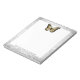 Junte notas e lembretes com um Bloco de Notas Brilhante Dourado personalizado. O design do Bloco de Notas apresenta uma borboleta brilhante adornada com uma vinha foliar contra o fundo e espaço da cinza para personalizar com o seu nome. Itens de papelaria correspondentes adicionais disponíveis com este design também. Se precisar de assistência com personalização, entre em contato comigo diretamente.