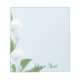 Uma ilustração gráfica dos lírios de calla pela artista/designer Charmaine Paulson no bloco de notas. O bloco de notas tem um modelo de texto para a sua personalização.