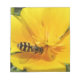 Este incrível bloco de anotações mostra uma fotografia detalhada de uma linda mosca negra e amarela listrada rastejando em um pipoca californiano amarelo procurando por néctar.