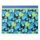 Um grande Bloco de Notas ou Jotter, com um padrão de abstrato 'Luas Azuis' em azul brilhante e verde neon em fundo preto; de um design de colagem de papel pintado à mão por Judy Adamson.