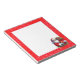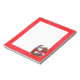 O Bloco de notas é mostrado com bordas brilhantes vermelhas falsas e divertidas e uma bela Cláusula Santa no canto inferior. Espaço branco no centro para você juntar suas mensagens. Personalize este item ou comprar como está. Imagens licenciadas