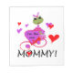 Um sapo verde giro, muitos corações cor-de-rosa e vermelhos, e texto que diz "Eu sou a nova Mamãe!" em caixas de manutenção da nova mãe, azulejos, ornamentos, cadernos, adesivos, cartões, canecas, mousépias, botões e muito mais!