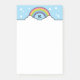 Blocos de notas adesivas personalizados para o regresso às aulas com um arco-íris feliz sobre o inicial da sua criança contra um céu azul com estrelas brancas e clarões. Blocos de notas adesivas do arco-íris personalizados com o seu inicial. Blocos de notas adesivas fofos para crianças de todas as idades com um arco-íris sobre o seu monograma.