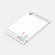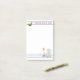 Aqui está um bloco de notas de 4"X6" Postado com o trio certeiro de amigos presos, um pavão roxo, um pato verde e um pintinho amarelo. Você pode personalizar a área de texto e a cor do plano de fundo.