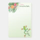 A viagem ao Sapo Verde Tropical começa a inspirar o Posto Name, nota que será um começo encorajador para o dia. Olhar para este sapo verde pronto para saltar e descobrir outro sapo verde espreitando para fora das flores e folhas tropicais certamente começará o dia com um sorriso e determinação. Quando você tem um amigo ou membro da família que precisa de encorajamento, esse é o caminho, especialmente se eles não estiverem perto. Uma névoa verde deriva para cima do sapo que salta e os pontos sutis de cinza são guias de pensamentos escrevendo ou de coisas a fazer. Esclareça alguns dias com este sapo verde especial poste as notas.
