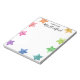 Branco Um caderno do professor personalizado com o nome do professor em um roteiro preto bonito. O bloco de anotações personalizado do professor apresenta estrelas sorridentes em todas as cores do arco-íris saindo das bordas do bloco de anotações.