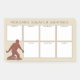 Personalize estas notas pegajosas engraçadas do calendário semanal das OBSERVAÇÕES de SQUATCH para o senhor mesmo ou seu Bigfooter favorito. Meu design de passeio original de Bigfoot em pedaços abstratos do marrom e do tan está falando um stroll no inferior esquerdo da página. Sete caixas brancas fornecem lotes do espaço para notas, lista e naturalmente, observações. Adicione seu nome da escolha ao encabeçamento das observações de Squatch e criar essa de uma almofada de nota pegajosa do calendário amável de Bigfoot como um presente personalizado original.