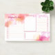 Bloco de notas adesivo de planejamento diário personalizado, impresso com manchas de aquarelas em tons de rosa e laranja, de 7:00 às 19:00, caixa de seleção para fazer lista e espaço para notas, planejamento de refeições ou qualquer outra coisa que você precise. Basta mudar o texto para se adequar ao propósito de suas notas de planejamento diário. Personalize adicionando seu nome em um roteiro encantador em rosa escuro. Organizar um bloco de notas diariamente com manchas de cor d'água laranja, pêssego e fuchsia, personalizadas com seu nome e suas categorias.