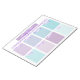 Este bloco de notas personalizado é a ferramenta perfeita para acompanhar todas as suas atividades semanais. Este design apresenta sete áreas por dia da semana em púrpuras e chaleiras pastéis, juntamente com uma área de vazio para suas notas, e no topo está seu nome e os 12 meses do ano. O texto é totalmente personalizável.