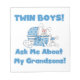 Novos e orgulhosos avós de bebês gêmeos vão adorar esta design azul bonita que apresenta dois coelhos num berço azul e um texto azul que diz "Pergunte-me sobre os meus netos!"